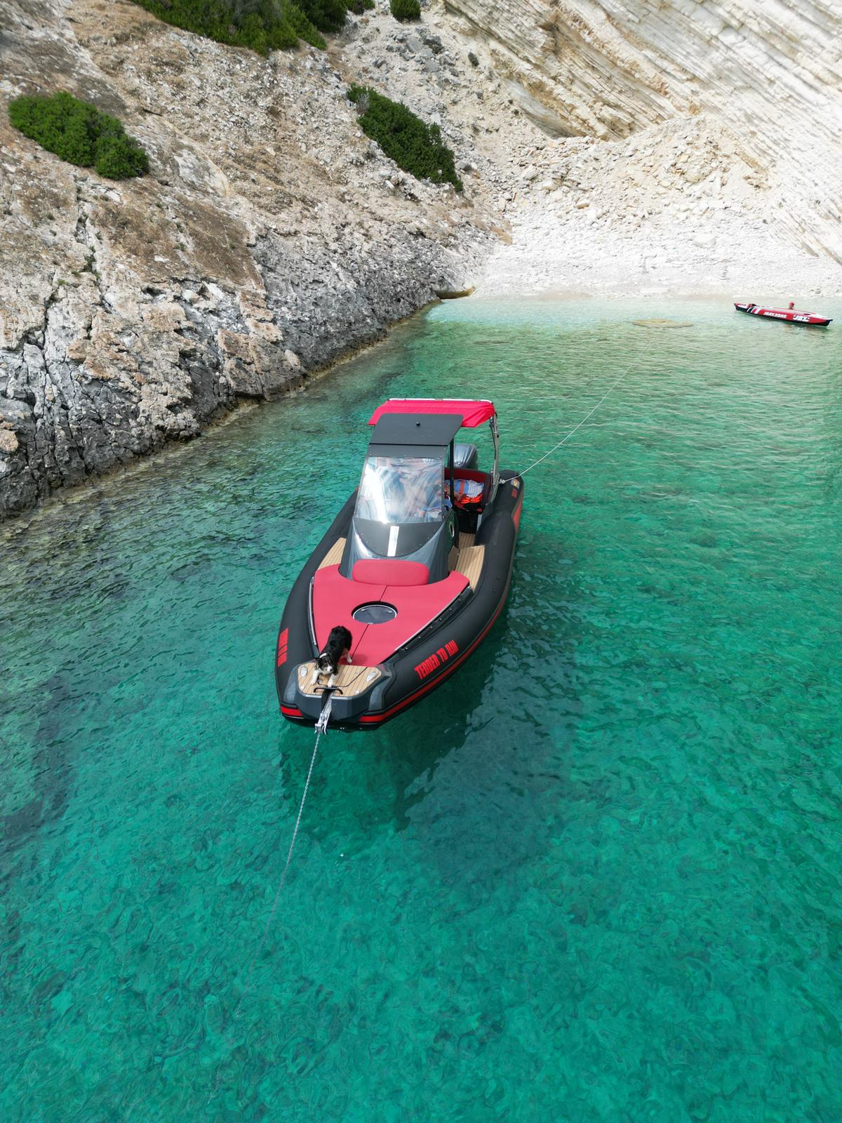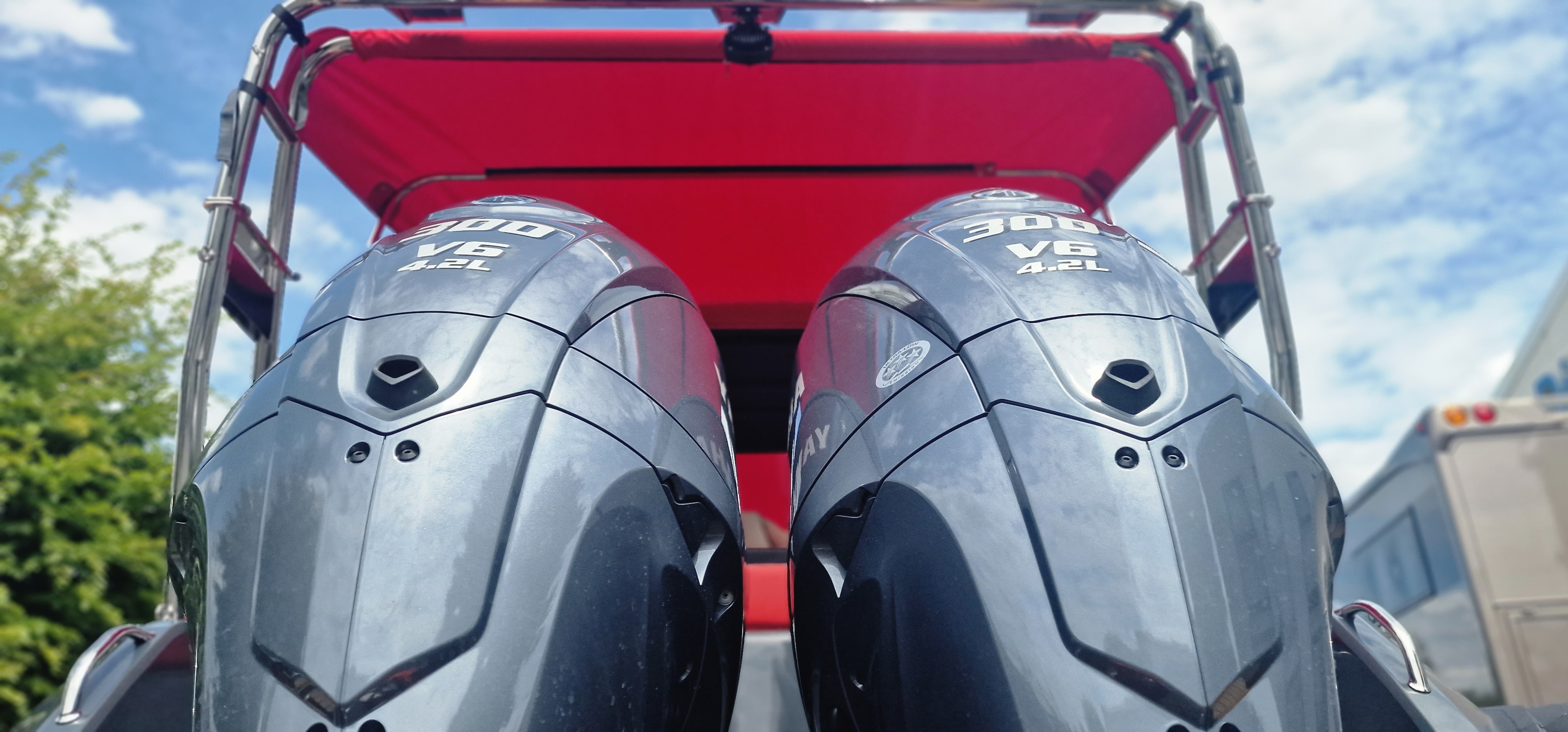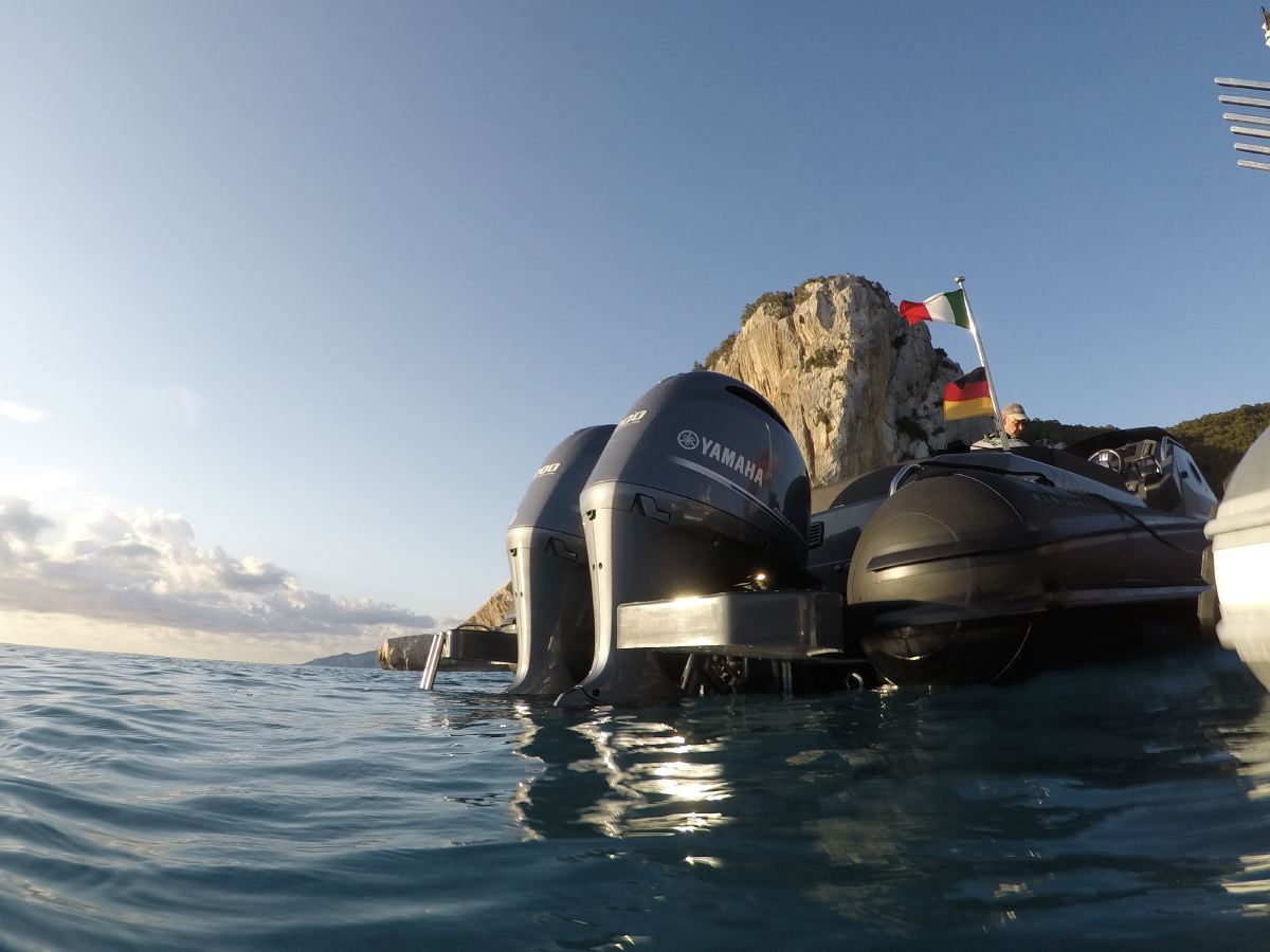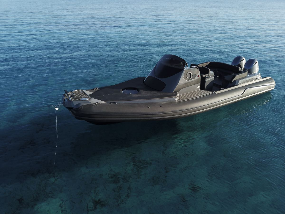 - Exterieur: Wir haben äußersten Wert auf die Funktionalität gelegt und trotzdem den Spagat geschafft das Design in seiner kompromisslosen Form nicht verändern zu müssen. Somit stehen Design und Funktionalität in Harmonie. Breite Durchgänge neben der Steuerkonsole gewährleisten ein Maximum an Trittsicherheit auch bei rauer See. Doppelte Heavy Duty Fenderleisten schützen den handgefertigten Schlauchkörper.
